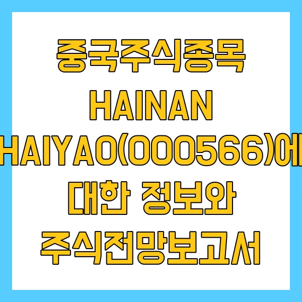 중국 주식 시장에 대한 관심이 그 어느 때보다 뜨겁습니다. 투자자들의 이목이 쏠리는 종목 중 하나인 HAINAN HAIYAO(000566) 는 매력적인 투자 기회를 제공할 수 있을지 귀추가 주목됩니다. 본 보고서는 해당 종목에 대한 심층적인 분석 을 통해 투자 판단에 필요한 핵심 정보를 제공하고자 합니다.